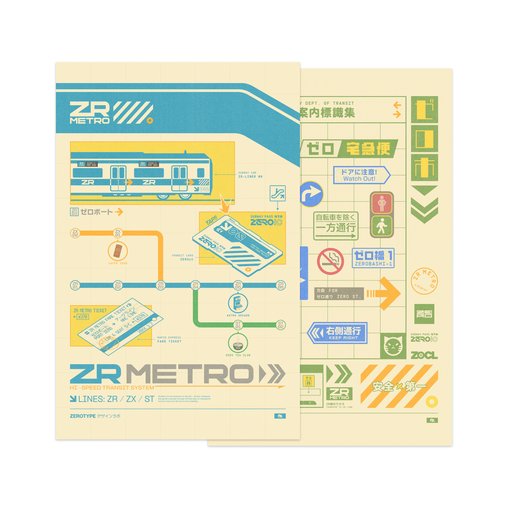 This is a bundle deal for the full set of my two ZERO metropolis prints (ZR Metro and ZERO City Signage) in 11" x 17" heavyweight matte cardstock.
